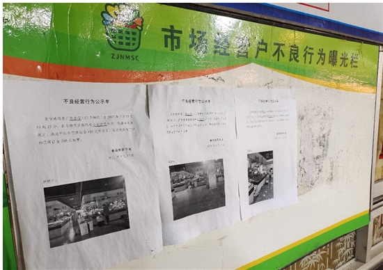 记者在现场看到,横湖桥菜场内整体管理有序,也并无乱吊挂、垃圾乱丢等现象。不少经营户表示,通过整治提升,菜场内环境也比过去好了不少。不良经营行为公示栏上贴着几张不良经营行为公示单。这些已被处罚过的经营户吃一堑长一智,也均已整改到位。