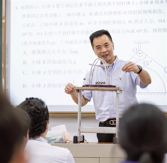 在江志云的课上,总是笑声不断,他能运用形象的比喻、巧妙的类比将枯燥难懂的物理知识演绎得趣味十足。“我会突出物理学科的特色,培养学生的物理思维和建模能力。”他坚持以实验为引导,让学生体验从现象到原理再到系统知识形成的过程,落实物理学科核心素养。