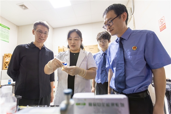 人大代表、检察官在农贸市场快检室见证样本检测全程。