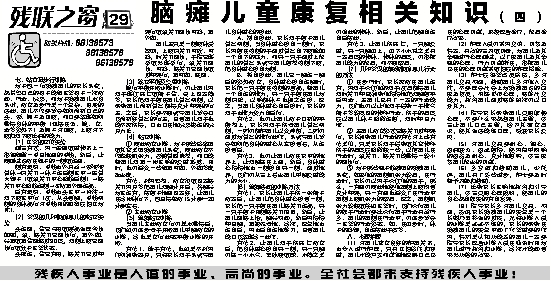 (8)指导家长多与患儿交流、沟通,告诉家长脑瘫患儿的康复是一个长期乃至终生的过程,光靠训练人员的训练是远远不够的,家长的帮助在脑瘫患儿的康复中起了非常重要的作用,特别是认知功能差的患儿一定要指导家长配合训练人员在业余时间对患儿进行教育和训练,这样才能起到事半功倍的效果。