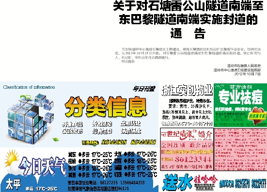 为加快温岭中心渔港石塘港区工程建设,确保石塘镇前红村后山矿区爆破作业安全,经研究决定,从2012年10月15日开始,对石塘雷公山隧道南端至东巴黎隧道南端实施封道,禁止所有行人、机动车、非机动车在此路段通行。
