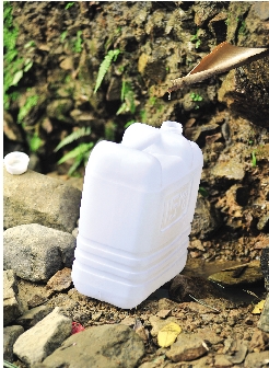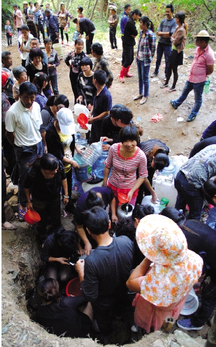| 无法从水坑接水的市民,从水坑附近的山体引水。 |