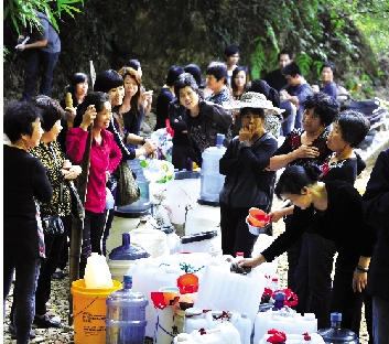 | 市民正在争抢“神水”。 |