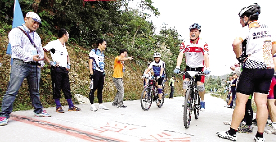 10月14日,市自行车运动协会在温峤镇东坑村举行首次车友嘉年华暨爬坡赛,来自全市的60多名单车爱好者参加了赛程3.2公里、连续上坡2.6公里的爬坡赛。 本报记者 刘振清摄