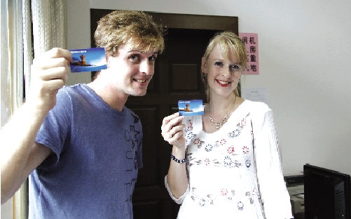 “有了这卡,以后去学校方便多了。”昨天下午,来自美国的Rachel和Daniel兄妹拿到了市民卡。他们是温岭中学的外教,今年9月份来到我市。服务中心工作人员介绍说,外国人只要有护照就可以办理市民卡,到目前为止,已经有9名外国人办理了市民卡,都是来自温岭中学的,5位留学生和4位外教。 本报记者 王妙德摄