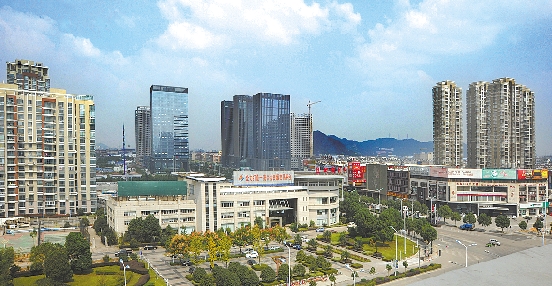 这是记者日前在城市新区拍摄的照片,在蓝天白云的映衬下,城市新区显得格外漂亮。近年来,随着我市城市化建设的快速推进,城市框架不断拉大,城市新区高楼林立,面貌日新月异,一座现代化中等城市正在崛起。