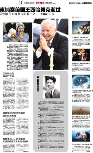 柬政府公告说,西哈努克因自然原因于凌晨1时20分(北京时间2时20分)在中国北京医院逝世。柬政府将把他的遗体从北京迎回金边,在王宫举行传统葬礼。