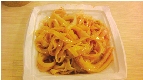 但咱不像外国人,还在汉堡里放生菜假装很有营养。咱就拿一个烙饼,侧面切开,放腊汁肉进去,装起,食之。味在腊汁,浓郁醇芳,肉酥不腻。话说回来,肉夹馍应是馍夹肉才对,白吉馍厚厚的里层像海绵一样吸足了腊汁肉的汁,嚼起来可谓“肥肉吃了不腻口,瘦肉无渣满含油,不用牙咬肉自烂,食后留香久不散”。