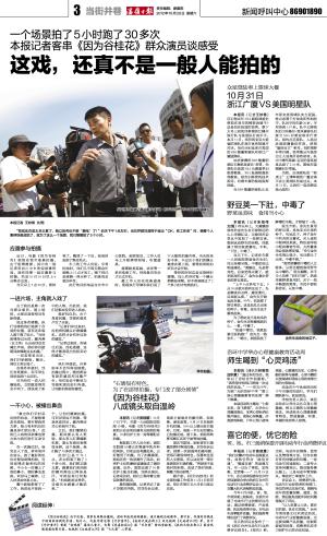 近日,电影《因为谷桂花》剧组在我市取景拍摄,由于剧情需要,其中有一场记者采访片中主角保剑锋的戏,我和同事一起应邀参与拍摄,约定10月18日早上6点集合出发。