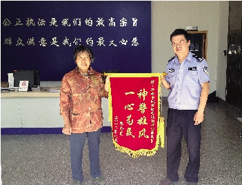 10月18日下午,城东街道下罗村的陈阿婆来到城西派出所,将一面写有“神警雄风,一心为民”的锦旗赠予该所民警。两个多月前,陈阿婆家中进贼,笔记本电脑等财物遭窃,损失上万元。城西派出所民警经过10多天的努力,抓获了犯罪嫌疑人,并将笔记本电脑追回。 本报通讯员 高荣华摄