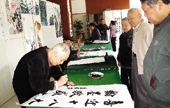 10月20日,市老干部书画协会80多位离退休老干部在市老干部活动中心书画室里挥毫泼墨,喜迎党的十八大。 本报签约摄影师 俞明德摄