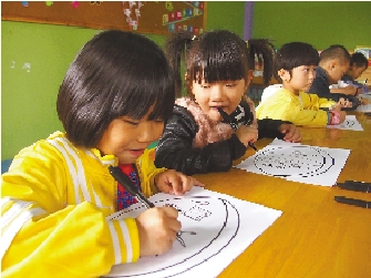 | 格林全纳幼儿园的小朋友们在画“明亮的眼睛”。 |