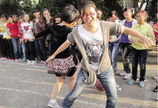 昨天下午,塘下中学举行了教师趣味运动会。教师们参加了滚滚轮胎、背对背运球球等多项运动,展现了课堂之外的风采。 本报通讯员 方巧敏 李鹏摄