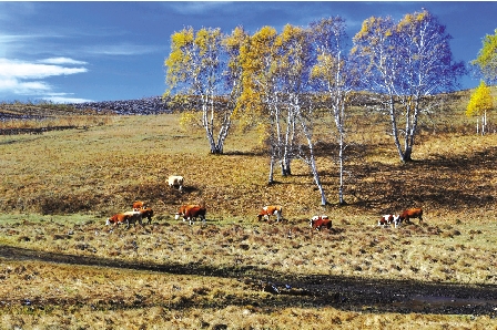 这次国庆加上中秋是8天长假,加上高速公路免收通行费,所以,很多网友选择了驾车外出旅游。长假过后,温岭摄影在线网友们上传的美景可以说是“爆棚”,这也让我们评委看花了眼。最终,在众多的作品中,网友“WLJKZ”的《金秋坝上》脱颖而出,摘得“每周一图”。《金秋坝上》发表于温岭摄影在线“行摄天下”版块,是一组组照,共3幅作品,原帖链接(http://bbs.wlnews.zjol.com.cn/forum.php?mod=viewthread&tid=328200)。这段时间,秋意正浓,应该是坝上风光最好的时节之一。这3幅作品中,第三幅应该是最漂亮的。这幅作品,首先在构图上十分到位,天际线在画面的三分之二处,增加了画面的层次和动感。画面的右方是几棵白桦树,构成了一个稳固的三角形,奠定了图片的整个重心。在画面的正中,是一群牛儿,位于中间的牛儿成为画面的第二视觉中心,也对画面的重心起到了平衡的作用。在牛儿行进的前方,留有一定的空间,视觉上给人一个向前的动感。此外,画面中的道路也起到了划分画面层次的作用。在色彩上,这幅作品也是可圈可点。蓝色的天空、白色的树干、黄色的草地、棕色的牛,使整幅画面的色彩十分丰富,也为这幅作品增色不少。