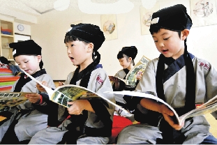 至于为什么会选择创办童学馆,陈女士道出了原因:首先是出于自己天生对小孩子的喜爱;其次是一直以来对我国传统文化的爱慕,对《论语》、《孟子》等圣贤经典更是爱不释手。两点相结合下,陈女士毅然转行,投身幼儿传统教育。这样,不仅可以有更多时间接触孩子,同时还能让更多的孩子了解我国传统文化,从而推动汉文化的复兴。