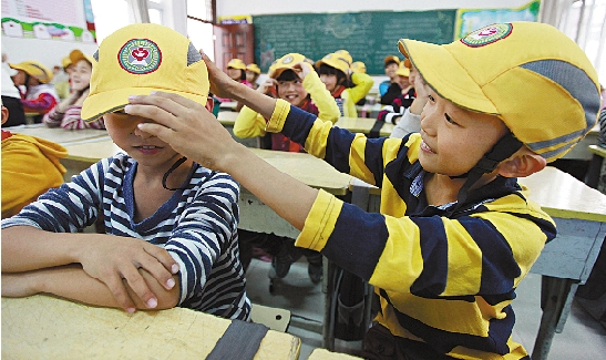 这种新型学生专用安全帽,内胆头盔为无毒ABS材料,能够承受17.5公斤的冲击力;帽身采用环保面料,醒目的黄色能引起行人和司机的注意,其银色反光薄膜能有效反射灯光,便于夜间识别,保障学生的出行安全。