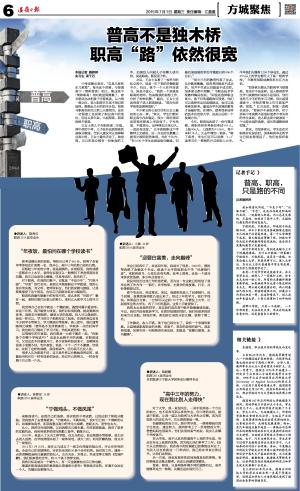 中考成绩出来后,“总是几家欢乐几家愁”。每当这个时候,与普通高中(简称普高)相比,职业高中(简称职高)相对就显得落寞了,家长想尽办法把孩子往普高送,以占得一席之位,进入职高往往是不得已的选择。根据近几年的招生计划,普高与职高在招生比例上大致相当。这在一定程度上也说明了职业高中的地位。但这么多年来,比起普高,职高依然不受宠。