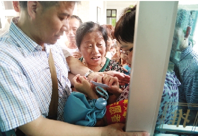 当天天气闷热,有几位老人站久后吃不消,排队到半路就折回去了。