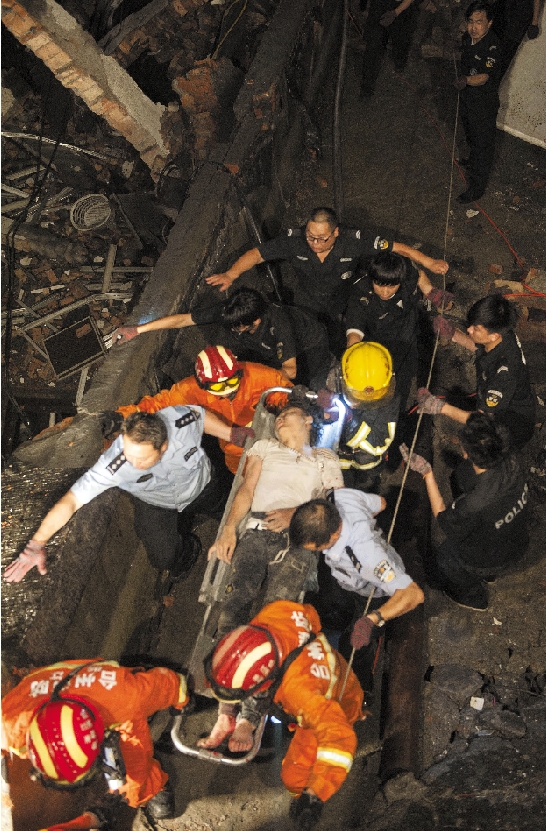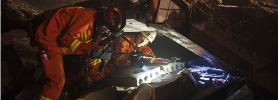 找到一名伤员,搜救人员立刻开始破拆抢救。