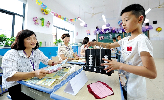 | 模块乐考 乐了学生 7月5日上午,横湖小学学生正在参加模块乐考期末考试。 据悉,从这学期开始,横湖小学取消了一、二年级的卷面考试,首次改为模块乐考加上强项展示评价,为学生减负,让考试也变得快乐起来。 700多名一、二年级的学生参加了“有模有样来写字”、“有滋有味来朗读”等五个项目的语文模块乐考和“口算小达人”、“勇闯数学园”等三个项目的数学模块乐考,还有舞蹈等才艺展示。 本报记者 吴鹏飞摄 |