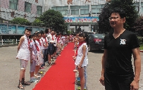 6月29日,在毕业典礼上,松门三小为学生安排了走红地毯环节。毕业生沿着红毯走向“未来”,红毯尽头是校长赠予的红包。 本报通讯员 谢法标摄