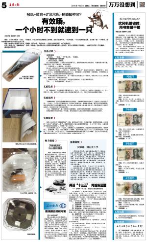 不过,“捕蟑螂神器”属于用物理方法除蟑螂,虽然当时能抓到蟑螂,但是治标不治本。