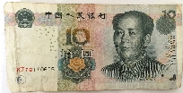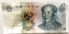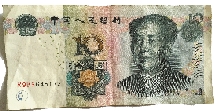 效果:10元纸币变硬,四边往上翘起,褶皱较多。