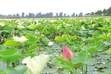 近日,箬横镇原东浦农场的曙光现代农业生态园里,100余亩的荷花正开得娇艳。