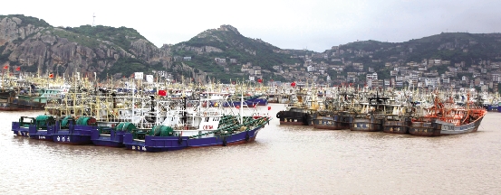 已返航的渔船在港内避风。 本报记者 刘振清摄