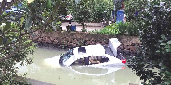 7月8日上午10点半左右,大溪镇良山村,一辆白色的大众轿车掉入河里。