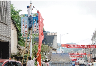 拆除广告牌。 本报签约摄影师 葛云丹摄