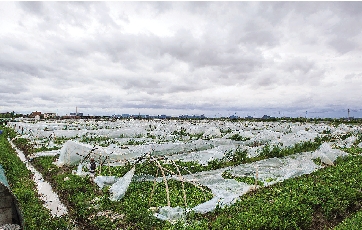 去年,牟顺行看到别人种香瓜收入不错,于是今年也跟着承包了18亩土地。为了能有个好收成,他买来许多竹条和油布,逐一给田地安上了大棚。然而,一场台风,不仅将他的果实基本打完,甚至将顶上的油布也刮了个一干二净。