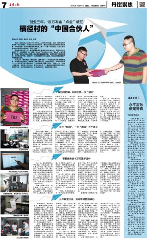 电影《中国合伙人》讲述了三个年轻人从学生时代相遇、相识,拥有同样的梦想至一起打拼事业,共同创办英语培训学校,最后功成名就实现梦想的励志故事。同样的故事,在泽国镇横径村真实地上演了——唯一不同的是,让他们实现梦想的不是英语培训学校,而是“淘宝”。