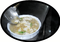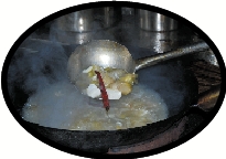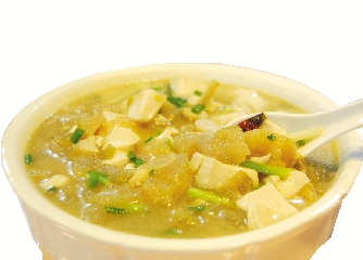 “猪油、小葱、蒜片、白糖、辣椒,一个都不能少。”林师傅一边做着一边向记者介绍起来。“先在锅里倒猪油,加蒜片炒香。”闻到一阵淡淡的清香后,林师傅马上放入刚从坛子里捞上来的“千里飘香”,用大火翻炒。随后,又加入料酒、白糖、辣椒,迅速翻炒了几分钟。“需要注意的是,这道菜绝对不能加盐,因为‘千里飘香’本身就比较咸。炒好后,要加入开水煮,用开水煮比用凉水煮口感更好。”林师傅说,加入开水后,水面上会冒泡,要像捞火锅上面的浮泡一样,把这些泡捞干净,然后放入豆腐煮。“豆腐一定要用中火煮6分钟以上,确认豆腐全部发泡了,才会比较入味。光是煮熟,跟把豆腐煮到发泡,口感是绝对不一样的。”最后,林师傅放入少许葱花,一道地地道道的“千里飘香”就算做好了。