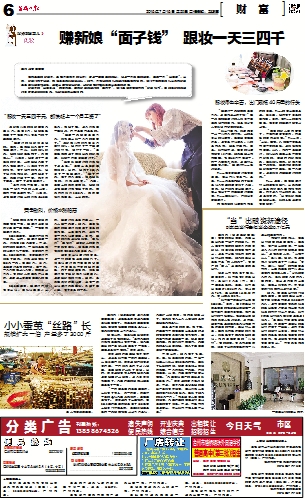 “没想到跟妆师的价格涨了这么多。”王女士是2009年结婚的,当时,她花了800元请了一位跟妆师,“跟了一天,做了两个造型,服务挺到位的,价格也实惠。”今年,王女士的表妹要结婚,她就把这位跟妆师推荐给了表妹。结果对方报价3500元,表妹觉得价格偏贵,十分犹豫。