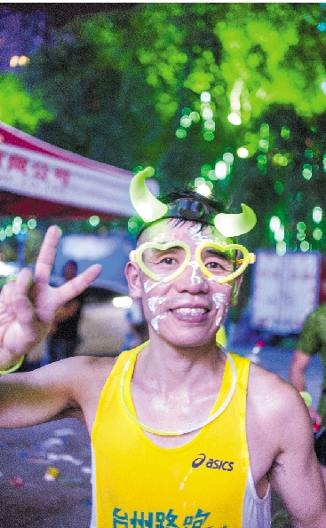 7月18日晚,市首届荧光跑激情开跑。300多名跑友参加,除了温岭的,还有来自韩国、中东等地的跑友,从中信银行出发,途经九龙大道、体育场路、万昌路,一路领略夜温岭的绮丽风景,共赴一场轻松、舒适、酣畅的荧光之约。图为来自路桥长跑队的“酷男”,今年50多岁的他已经有了7年多的长跑历史,跑了全城10公里,还不过瘾。