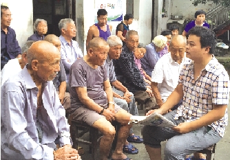 19日上午9点左右,骑着电瓶车,陈瑶从新河赶到了箬横敬老院。“人来人往的松门大街上,十多名便衣警察围堵一辆疯狂逃窜的摩托车,上演警匪追击。”他给老人们读起了《温岭日报》7月15日3版刊登的一则新闻。除了新闻,他还给老人们讲了一些养生知识。