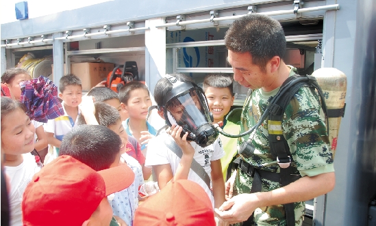 当天上午,经过消防员的细心讲解,“小候鸟们”了解了消防车的使用,也学会了使用常规灭火器,并在模拟火灾、地震等意外情况下学会了有序、安全、撤离疏导。