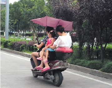 现在天气热了,许多市民都开电瓶车出行,违法安装遮阳伞、超载、在机动车道内行驶等违法现象非常突出,涉及电瓶车的事故也比之前有所增加。在此,交警提醒电瓶车驾驶人一定要注意交通安全,切勿驶入机动车道内,千万别安装遮阳伞。