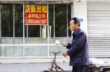 万寿路上不少店面倒闭出租。本报记者 朱海伟摄