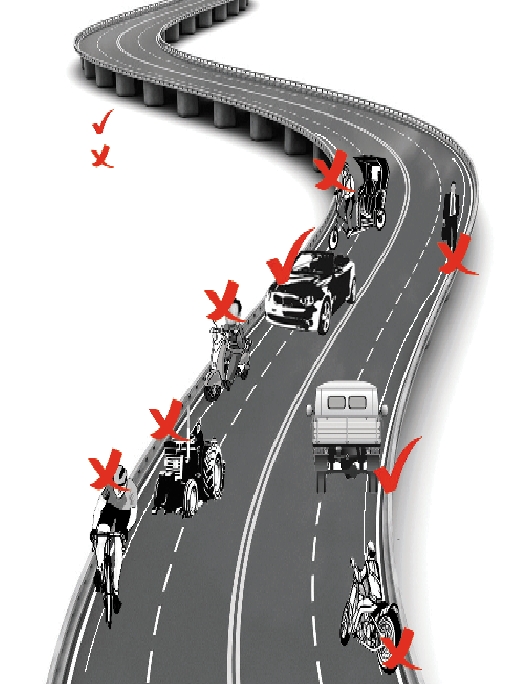 林贻高说,这些违反禁令闯入一级公路的电瓶车、燃油助力车和摩托车,车速一般都在每小时60公里以上。记者看到,进入一级公路后,电瓶车、摩托车就与机动车混行,有的还在大型车辆之间来回穿梭,非常危险。