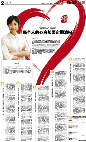 潘幸知建议,专业情感咨询是一件常常需要的事,是女性一生的课程。因为,女性是情感动物,男人是逻辑生物。移动互联网时代短平快的生活方式,非常适合碎片化的在线情感咨询。她认为,做做“心灵大保健”把内心的疑惑吐出来,是女性保持年轻的秘诀。