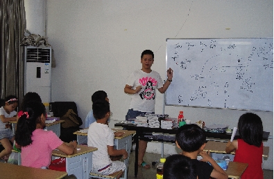 “这些孩子的父母大多都在附近工厂务工,平时忙于工作,无暇照顾放暑假的孩子们。我们正好利用这个假期,来教孩子们一些简单的知识。”正在为孩子们上课的大一学生黄姚鹏说,“候鸟班”一经推出,来报名的家长就有不少,这几天每天来上课的孩子大约有40多人,年龄在4至14周岁之间,“大一点的孩子,我们就单独辅导他们做暑假作业;小一点的孩子,我们就给他们上课,教一些简单的知识。”