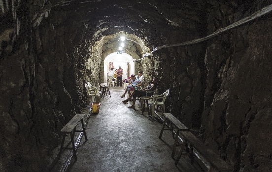 昨天下午3点多,我市县后山的防空洞内,十几位市民在防空洞门口附近避暑。由于防空洞内阴凉潮湿,少有人深入洞内避暑。