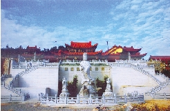 这是集佛陀教育、文化旅游、慈善安养为一体的修炼经法之地,体现唐代和明清建筑风格。目前已建有大雄宝殿、天王殿、圆通殿、放生池等,圆通殿内供奉着高9米、由13吨纯铜铸造而成的千手千眼观世音坐像。寺内观音圣像陈列馆收藏的观音佛像、图片、字画等,在各地观音寺院中颇为丰富。