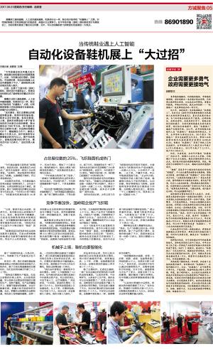 日前,在第十七届中国(温岭)鞋机、鞋材及针车展览会上,各类自动化鞋机成了温岭鞋企的重点关注对象。