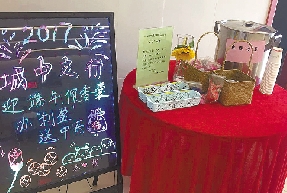 本报讯(记者黄慧慧 通讯员程蕴文/图)五色新丝缠角粽。正值端午佳节,农行温岭支行举办了丰富多彩的庆祝端午节活动,处处洋溢着节日的欢乐气氛。