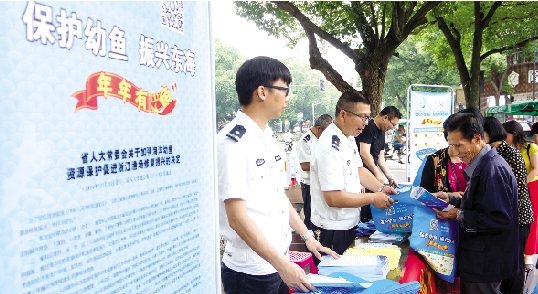 “师傅,禁渔期内,禁止销售带鱼、大黄鱼、小黄鱼、银鲳、鲐鱼、三疣梭子蟹、龙头鱼、濑尿虾(虾蛄)等8种野生活体和冰鲜海鲜。”6月8日是第九个世界海洋日和第十个全国海洋宣传日,今年全国海洋宣传日活动主题为“扬波大海,走向深蓝”。当天上午,市海洋与渔业局在街心公园路口宣传幼鱼保护和伏季休渔。除了送上宣传资料外,工作人员还耐心地向市民讲解海洋资源保护知识。