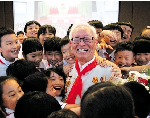“和孩子们在一起,我永远年轻。我要让白发和红领巾一起飘扬!”俞老笑得像个孩子,纯真又灿烂。