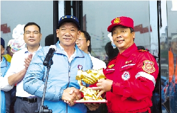 郭文标向曾太山赠送了一座写着“诚信”两字的雕像。